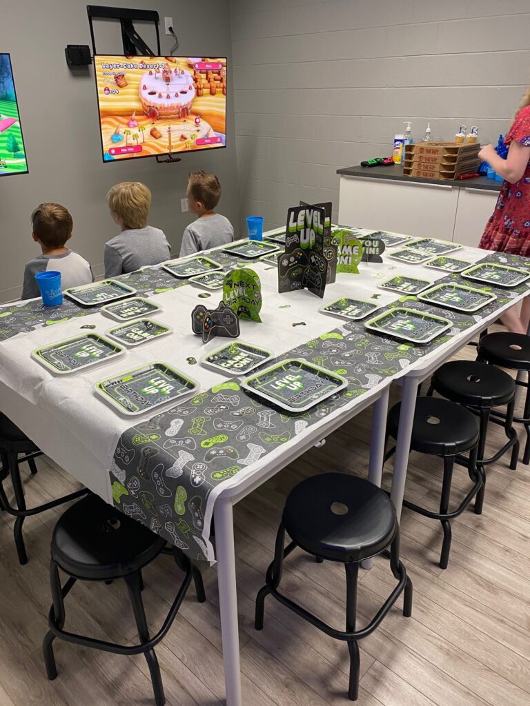Host your next birthday or special event in our private Party Room! With space for up to 24 guests, 4 TVs, and game consoles, it’s the perfect spot for an epic celebration.